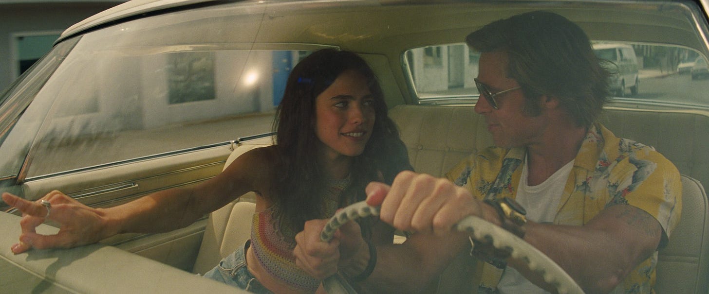 I’ve not seen the film this is based on but since it departs from the source material anyway, I don’t see that as a flaw. The setting is the story anyway — Hollywood, 1969. People have time to kill in their cars and on movie sets. Everything is colourful and exciting. Eisenhower is long gone. The girls are wearing miniskirts and some of them don’t wash. What a time to be alive.